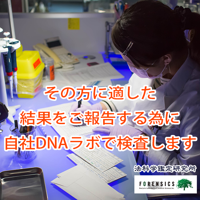 DNA鑑定/遺伝子検査は、法科学鑑定研究所 株式会社が提供する「DNA型鑑定/遺伝子検査」です。お申込みには、ご本人様がサービス内容を十分にご理解のうえ、同意をいただく必要があります。
